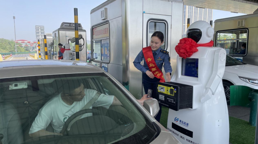 中國(guó)高速公路:萌萌噠!山東省首款“人形智能車(chē)道收費(fèi)機(jī)器人”亮相青島